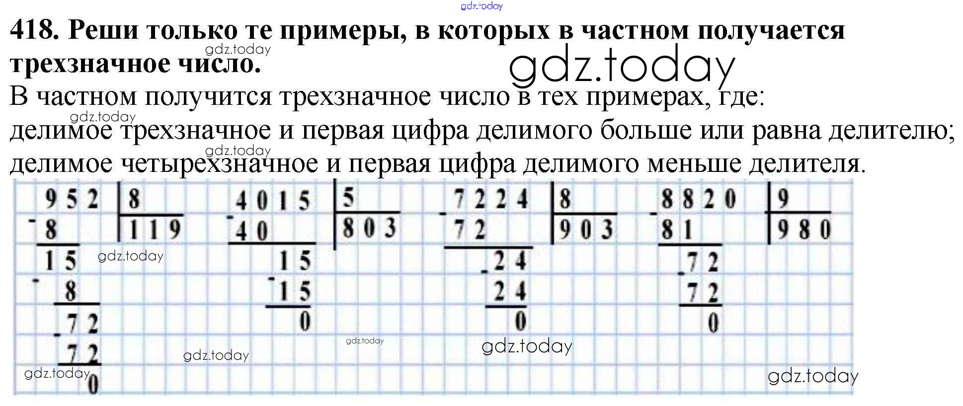 На страницах сайта gdz.today вы найдете учебный и вспомогательный материал, направленный на улучшения знаний школьной программы. ГДЗ - онлайн мир знаний Упражнения Решение к части 1 418 Учебнику по Математике для 4 класса Моро, Бантова Просвещение Школа России 2015