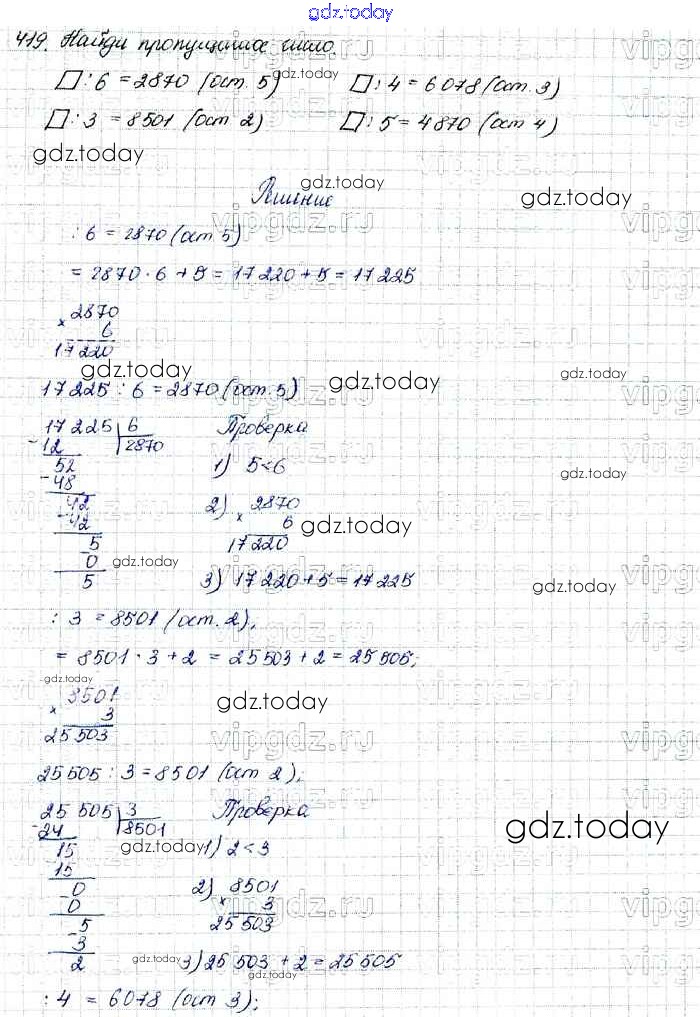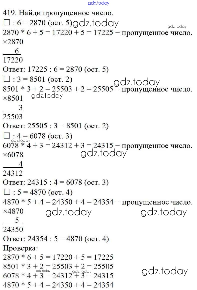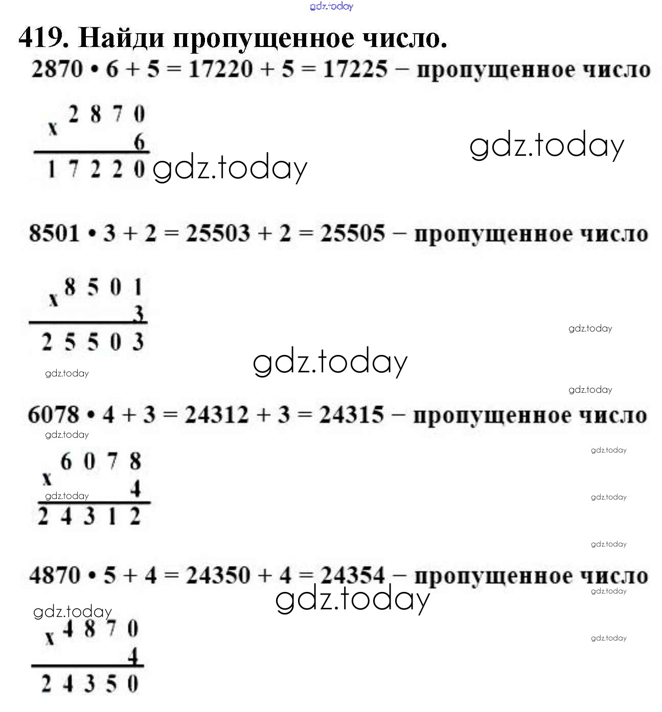 На страницах сайта gdz.today вы найдете учебный и вспомогательный материал, направленный на улучшения знаний школьной программы. ГДЗ - онлайн мир знаний Упражнения Решение к части 1 419 Учебнику по Математике для 4 класса Моро, Бантова Просвещение Школа России 2015