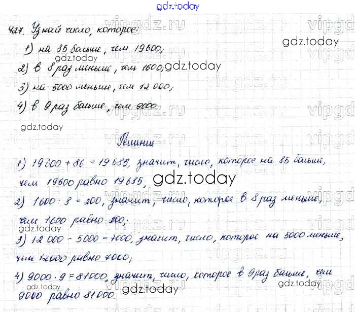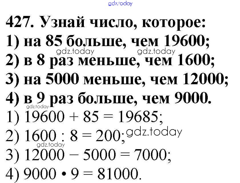 На страницах сайта gdz.today вы найдете учебный и вспомогательный материал, направленный на улучшения знаний школьной программы. ГДЗ - онлайн мир знаний Упражнения Решение к части 1 427 Учебнику по Математике для 4 класса Моро, Бантова Просвещение Школа России 2015