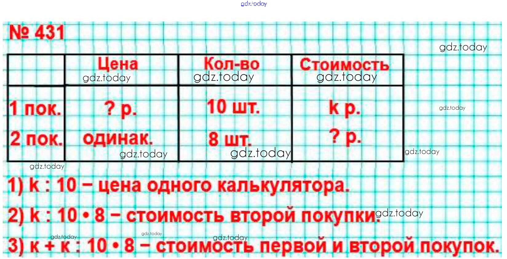 Ответы к Упражнения Решение к части 1 431 Учебнику по Математике для 4 класса Моро, Бантова Просвещение Школа России 2015