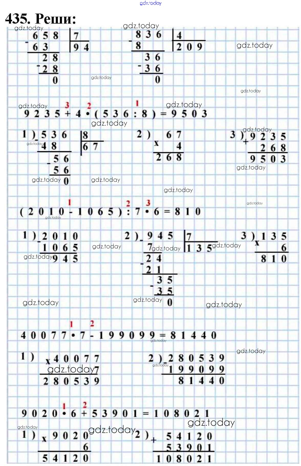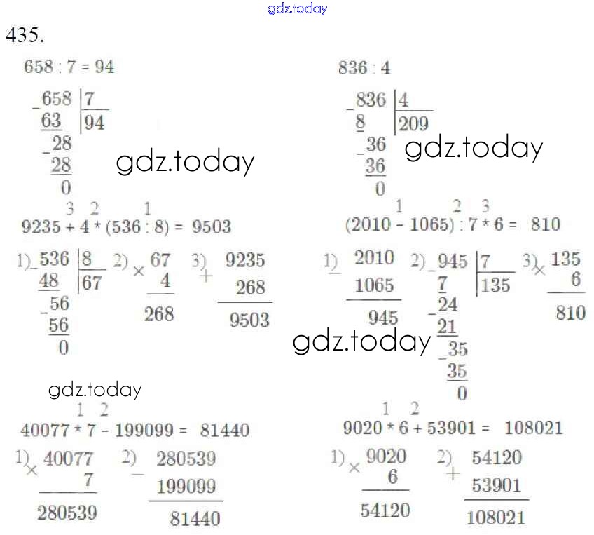 На страницах сайта gdz.today вы найдете учебный и вспомогательный материал, направленный на улучшения знаний школьной программы. ГДЗ - онлайн мир знаний Упражнения Решение к части 1 435 Учебнику по Математике для 4 класса Моро, Бантова Просвещение Школа России 2015