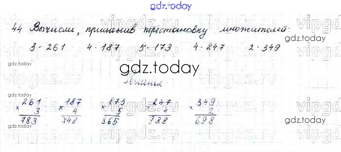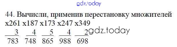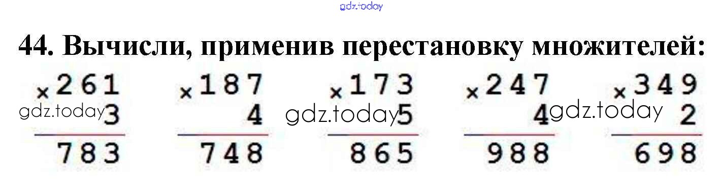 На страницах сайта gdz.today вы найдете учебный и вспомогательный материал, направленный на улучшения знаний школьной программы. ГДЗ - онлайн мир знаний Упражнения Решение к части 1 44 Учебнику по Математике для 4 класса Моро, Бантова Просвещение Школа России 2015