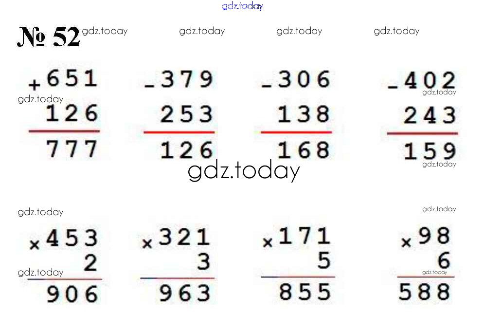Ответы к Упражнения Решение к части 1 52 Учебнику по Математике для 4 класса Моро, Бантова Просвещение Школа России 2015