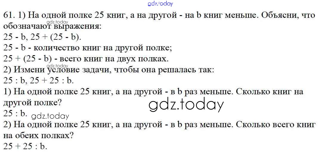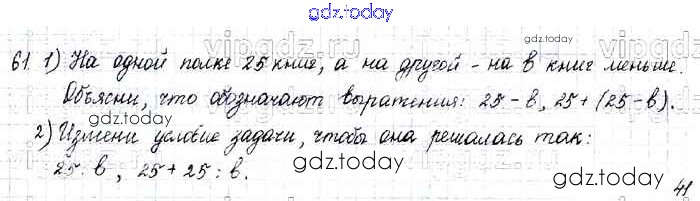 На страницах сайта gdz.today вы найдете учебный и вспомогательный материал, направленный на улучшения знаний школьной программы. ГДЗ - онлайн мир знаний Упражнения Решение к части 1 61 Учебнику по Математике для 4 класса Моро, Бантова Просвещение Школа России 2015