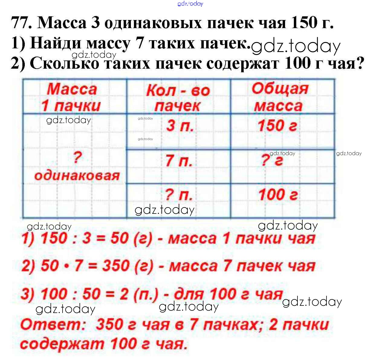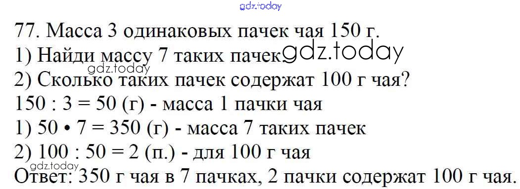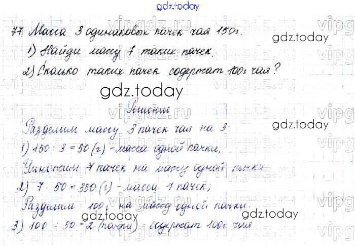На страницах сайта gdz.today вы найдете учебный и вспомогательный материал, направленный на улучшения знаний школьной программы. ГДЗ - онлайн мир знаний Упражнения Решение к части 1 77 Учебнику по Математике для 4 класса Моро, Бантова Просвещение Школа России 2015