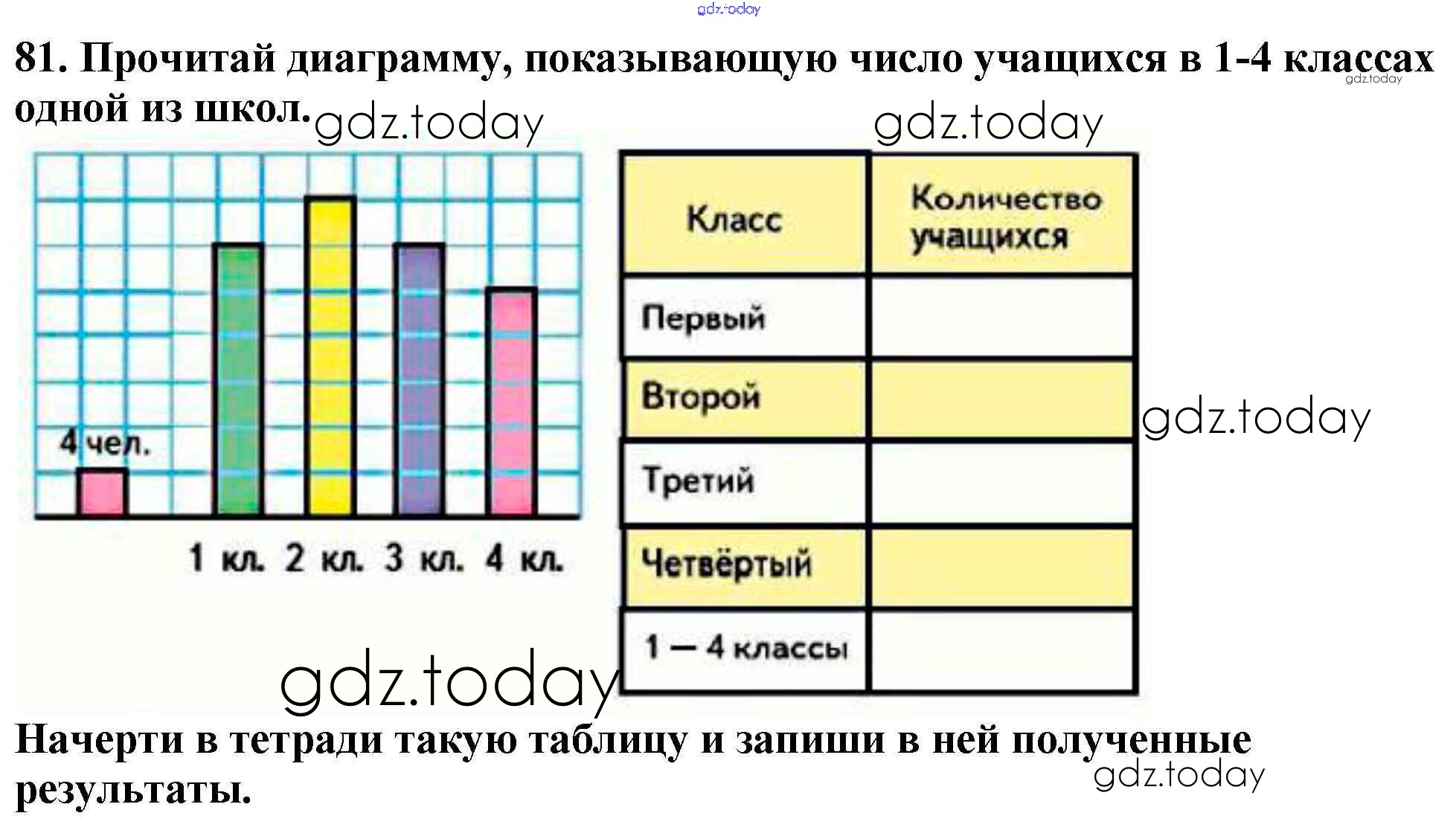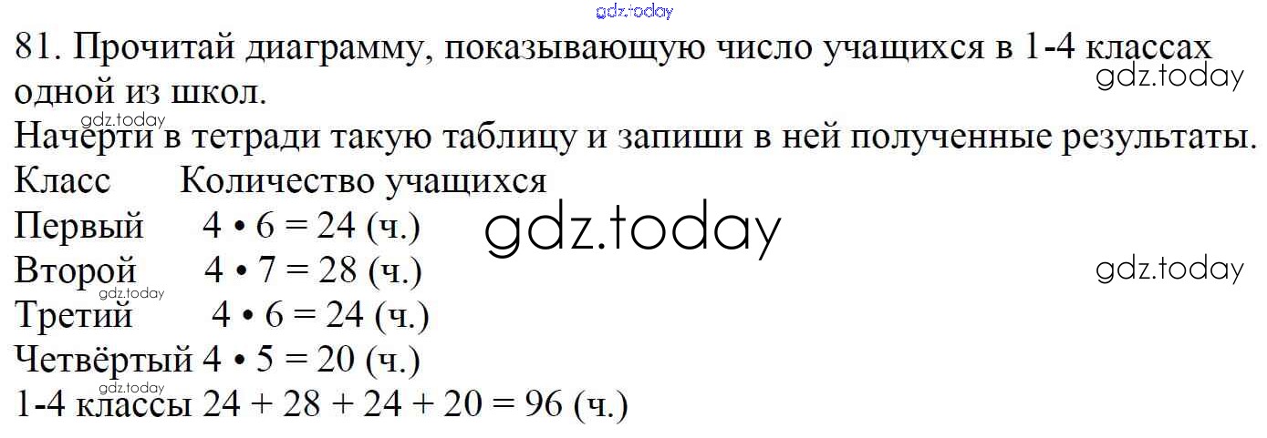 На страницах сайта gdz.today вы найдете учебный и вспомогательный материал, направленный на улучшения знаний школьной программы. ГДЗ - онлайн мир знаний Упражнения Решение к части 1 81 Учебнику по Математике для 4 класса Моро, Бантова Просвещение Школа России 2015