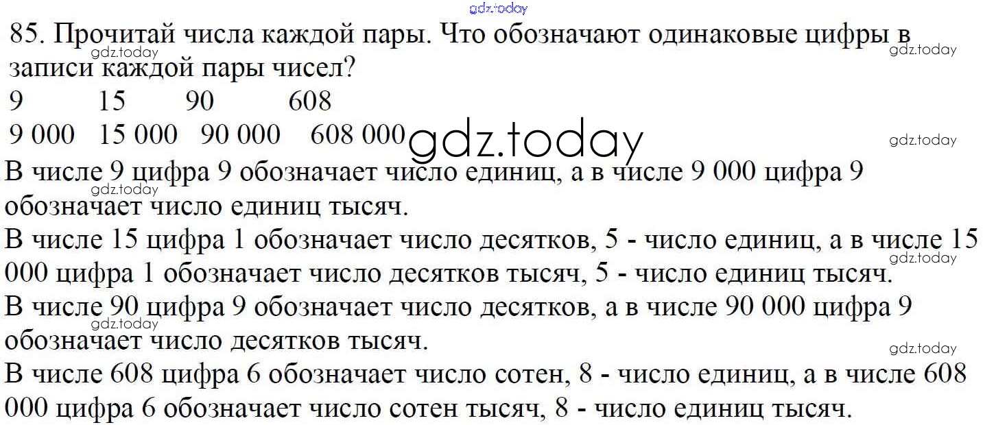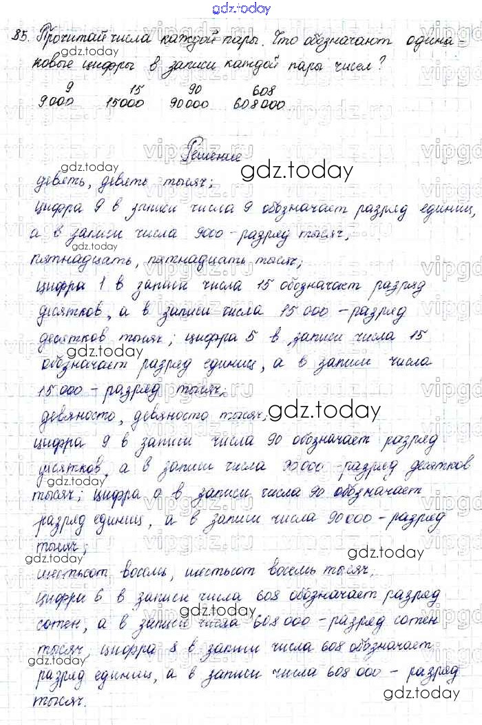 На страницах сайта gdz.today вы найдете учебный и вспомогательный материал, направленный на улучшения знаний школьной программы. ГДЗ - онлайн мир знаний Упражнения Решение к части 1 85 Учебнику по Математике для 4 класса Моро, Бантова Просвещение Школа России 2015