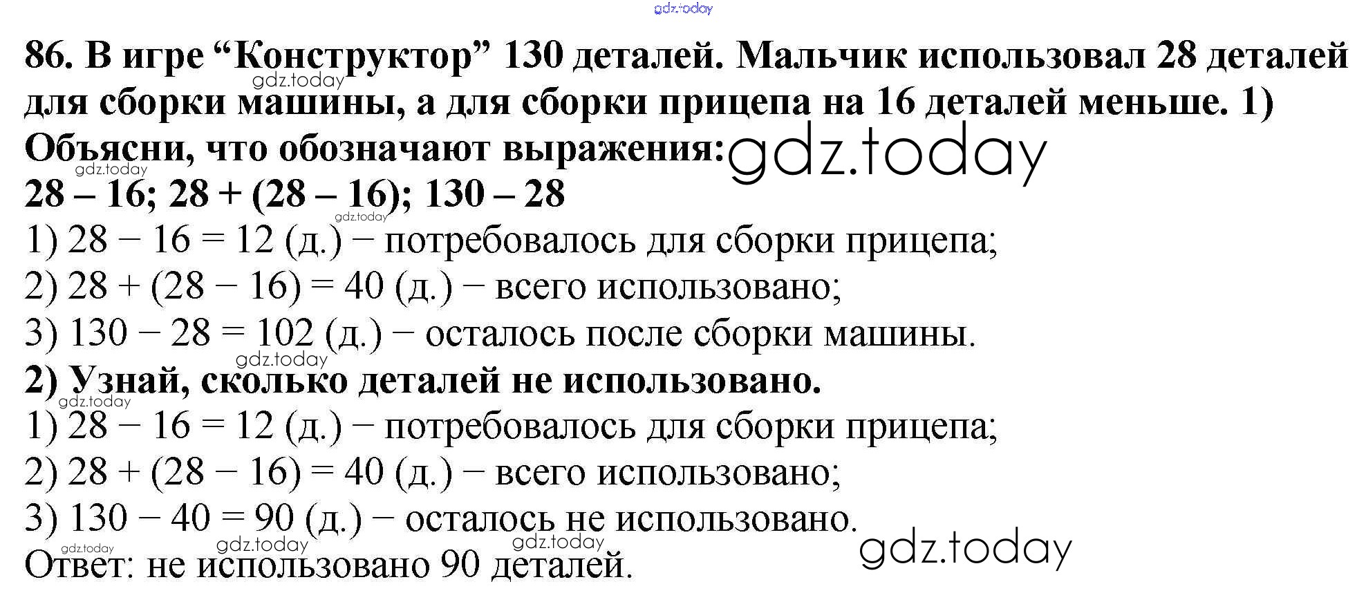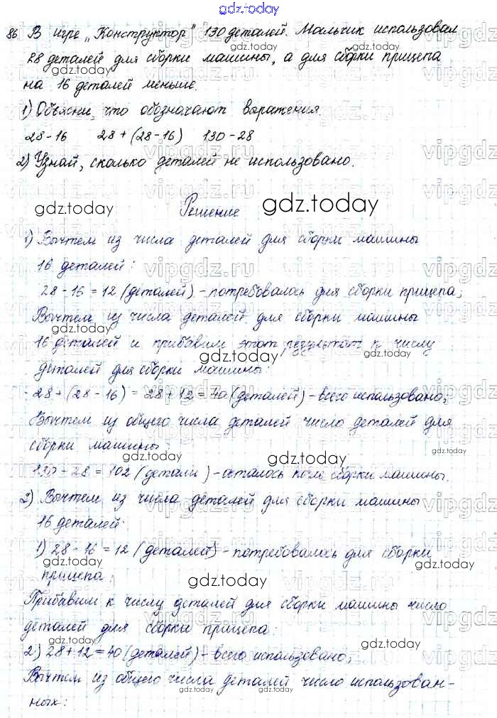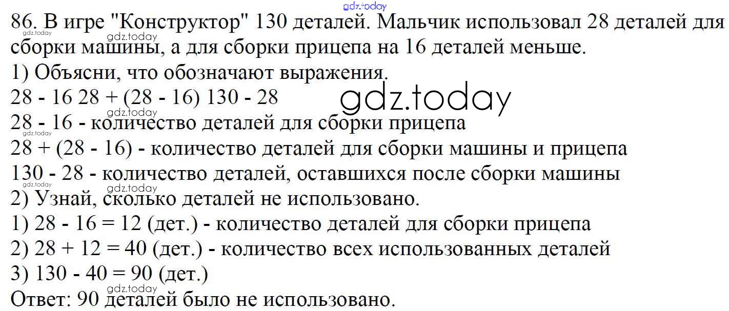 На страницах сайта gdz.today вы найдете учебный и вспомогательный материал, направленный на улучшения знаний школьной программы. ГДЗ - онлайн мир знаний Упражнения Решение к части 1 86 Учебнику по Математике для 4 класса Моро, Бантова Просвещение Школа России 2015