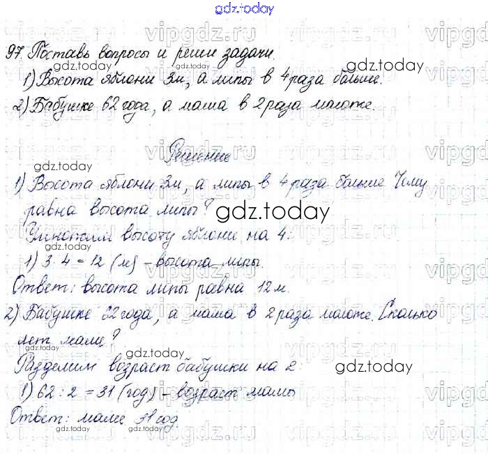 На страницах сайта gdz.today вы найдете учебный и вспомогательный материал, направленный на улучшения знаний школьной программы. ГДЗ - онлайн мир знаний Упражнения Решение к части 1 97 Учебнику по Математике для 4 класса Моро, Бантова Просвещение Школа России 2015