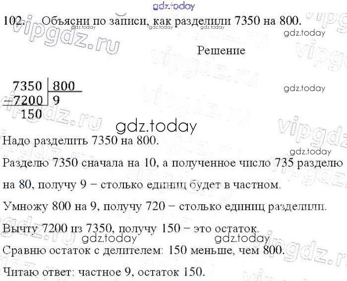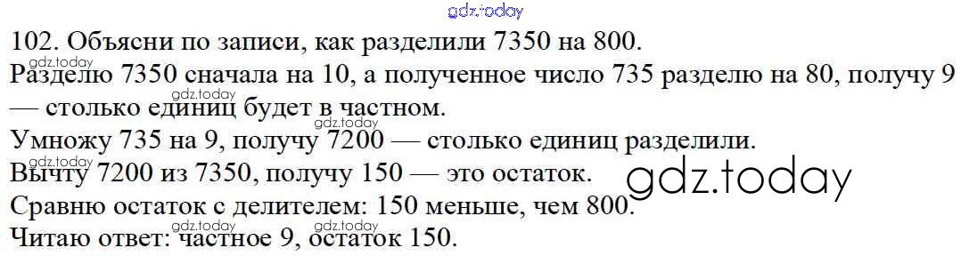 Ответы к Упражнения Решение к части 2 102 Учебнику по Математике для 4 класса Моро, Бантова Просвещение Школа России 2015