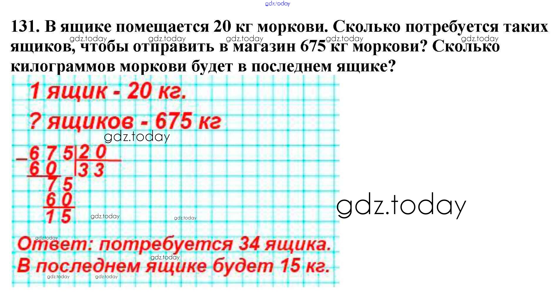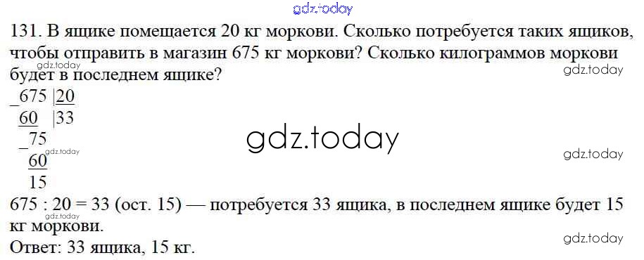 На страницах сайта gdz.today вы найдете учебный и вспомогательный материал, направленный на улучшения знаний школьной программы. ГДЗ - онлайн мир знаний Упражнения Решение к части 2 131 Учебнику по Математике для 4 класса Моро, Бантова Просвещение Школа России 2015
