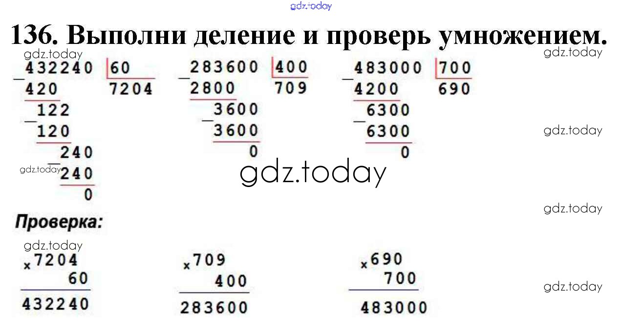 На страницах сайта gdz.today вы найдете учебный и вспомогательный материал, направленный на улучшения знаний школьной программы. ГДЗ - онлайн мир знаний Упражнения Решение к части 2 136 Учебнику по Математике для 4 класса Моро, Бантова Просвещение Школа России 2015