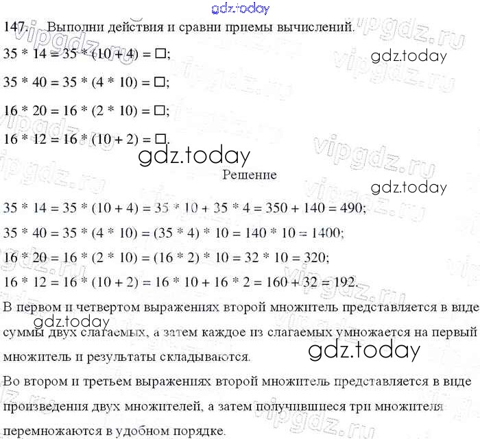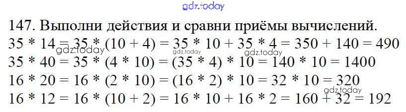 На страницах сайта gdz.today вы найдете учебный и вспомогательный материал, направленный на улучшения знаний школьной программы. ГДЗ - онлайн мир знаний Упражнения Решение к части 2 147 Учебнику по Математике для 4 класса Моро, Бантова Просвещение Школа России 2015