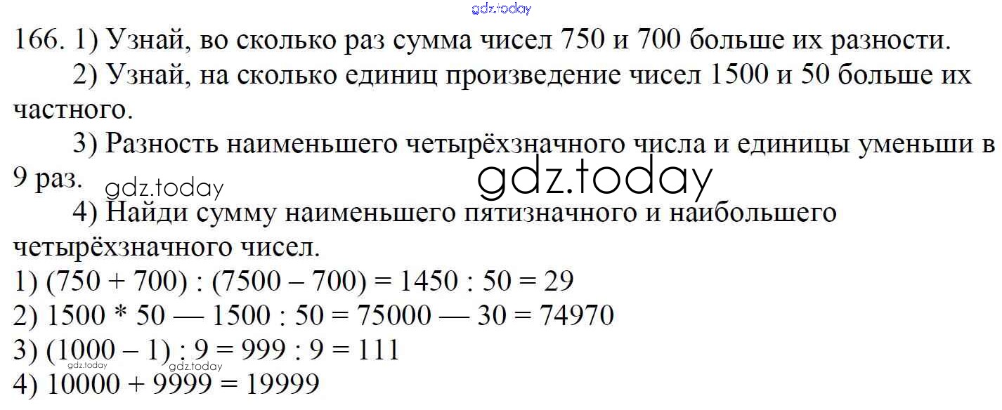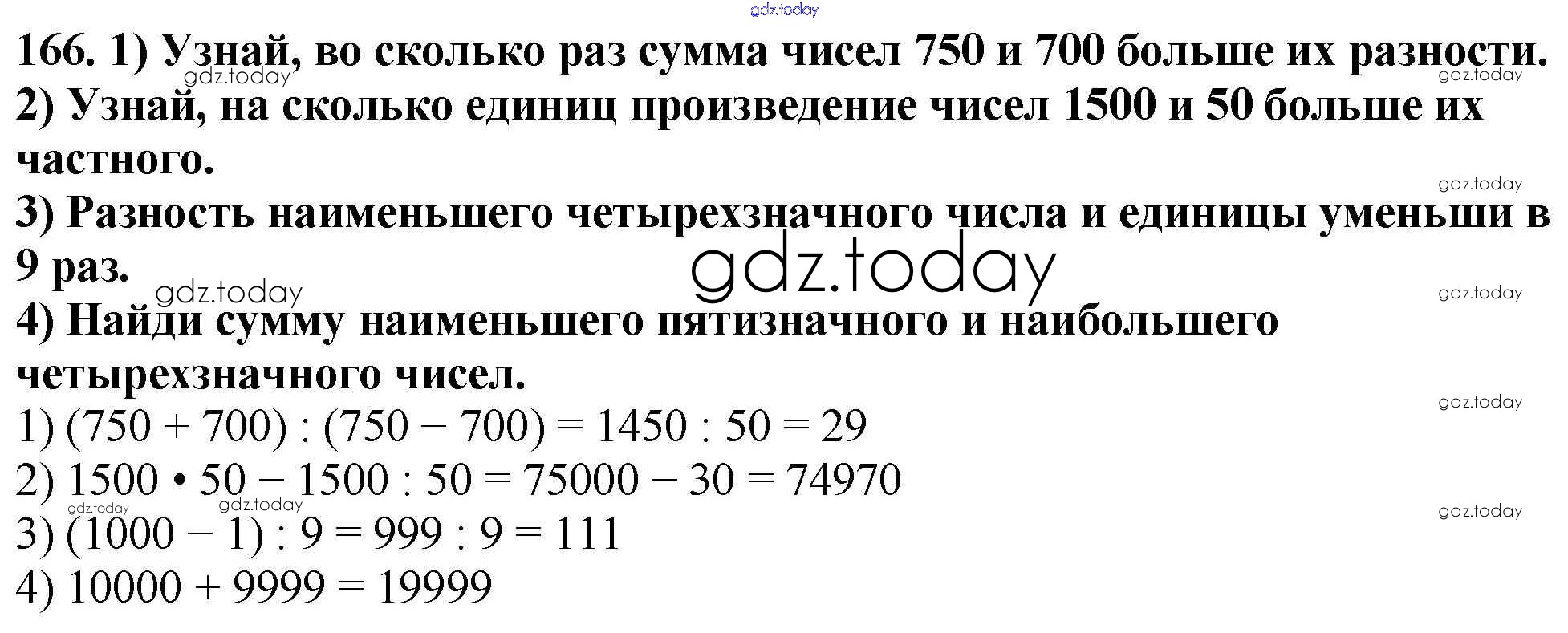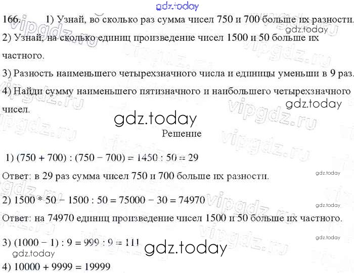 Ответы к Упражнения Решение к части 2 166 Учебнику по Математике для 4 класса Моро, Бантова Просвещение Школа России 2015
