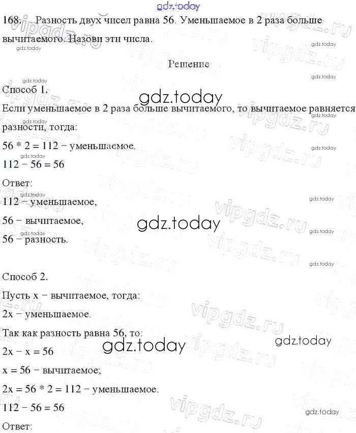 Ответы к Упражнения Решение к части 2 168 Учебнику по Математике для 4 класса Моро, Бантова Просвещение Школа России 2015