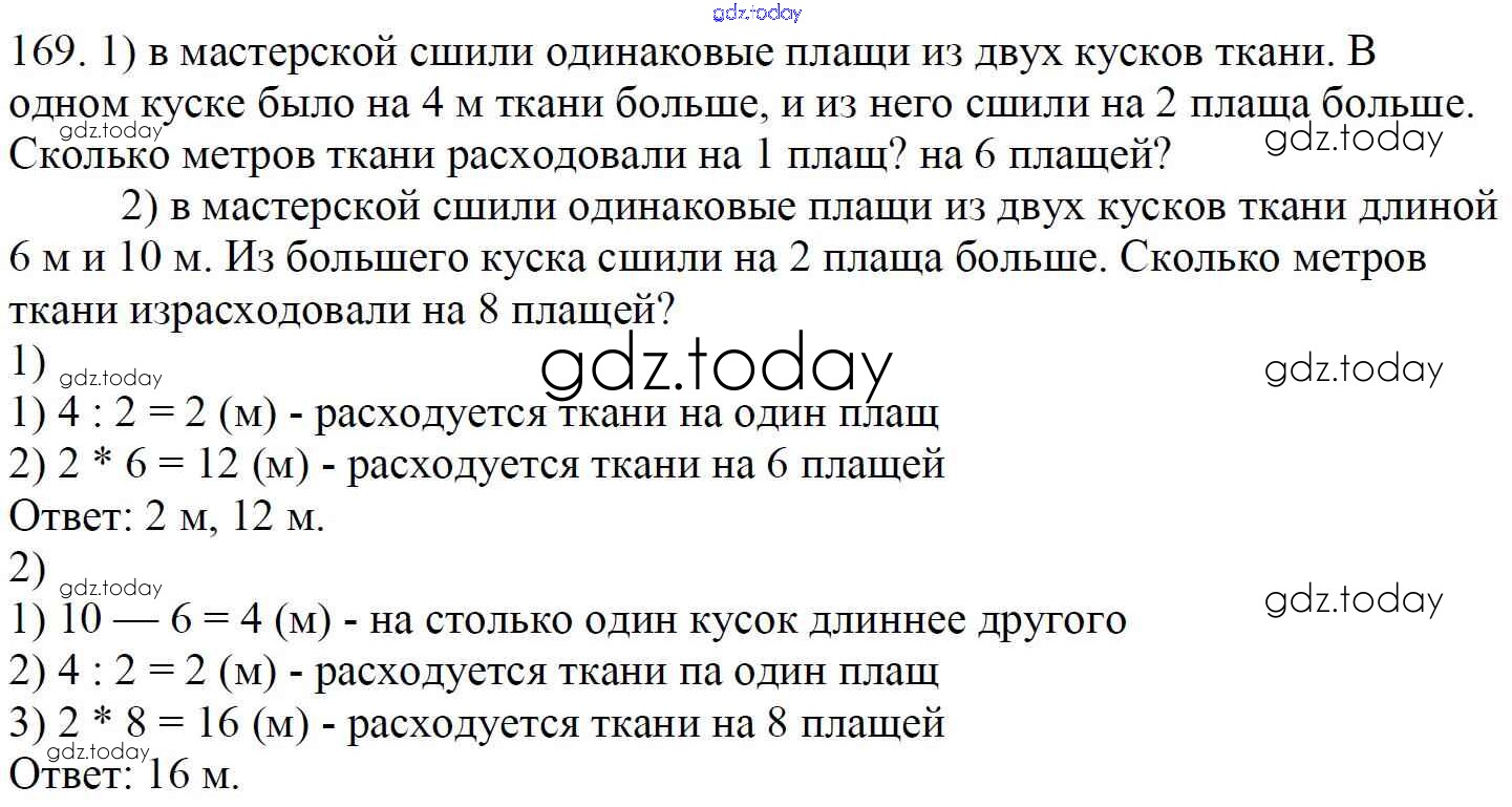 Ответы к Упражнения Решение к части 2 169 Учебнику по Математике для 4 класса Моро, Бантова Просвещение Школа России 2015