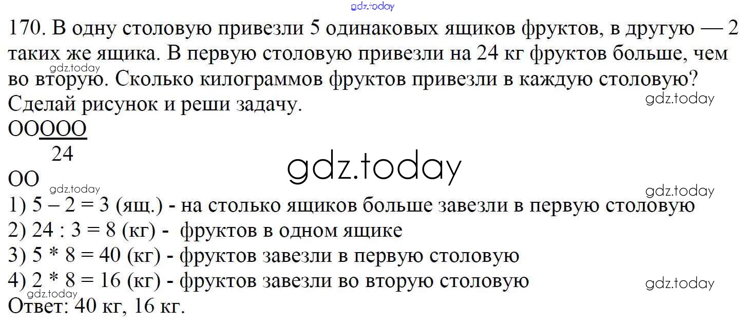 На страницах сайта gdz.today вы найдете учебный и вспомогательный материал, направленный на улучшения знаний школьной программы. ГДЗ - онлайн мир знаний Упражнения Решение к части 2 170 Учебнику по Математике для 4 класса Моро, Бантова Просвещение Школа России 2015