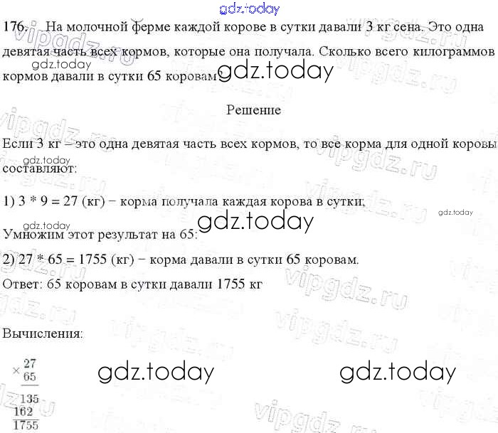 На страницах сайта gdz.today вы найдете учебный и вспомогательный материал, направленный на улучшения знаний школьной программы. ГДЗ - онлайн мир знаний Упражнения Решение к части 2 176 Учебнику по Математике для 4 класса Моро, Бантова Просвещение Школа России 2015