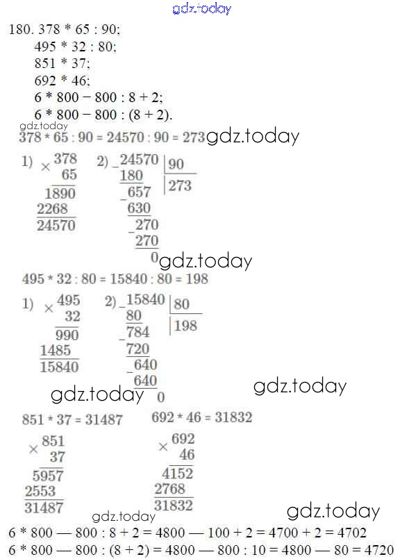 На страницах сайта gdz.today вы найдете учебный и вспомогательный материал, направленный на улучшения знаний школьной программы. ГДЗ - онлайн мир знаний Упражнения Решение к части 2 180 Учебнику по Математике для 4 класса Моро, Бантова Просвещение Школа России 2015