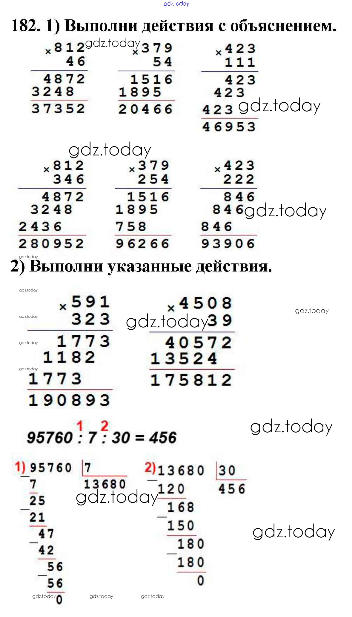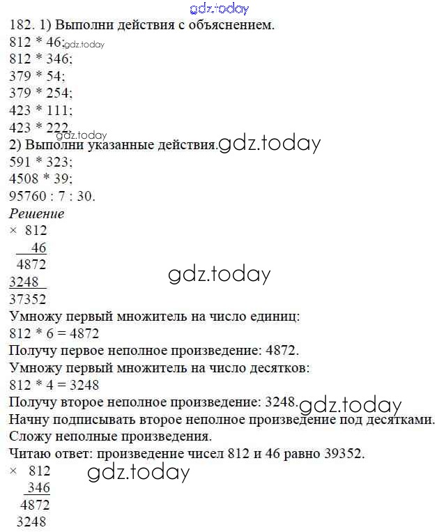 На страницах сайта gdz.today вы найдете учебный и вспомогательный материал, направленный на улучшения знаний школьной программы. ГДЗ - онлайн мир знаний Упражнения Решение к части 2 182 Учебнику по Математике для 4 класса Моро, Бантова Просвещение Школа России 2015