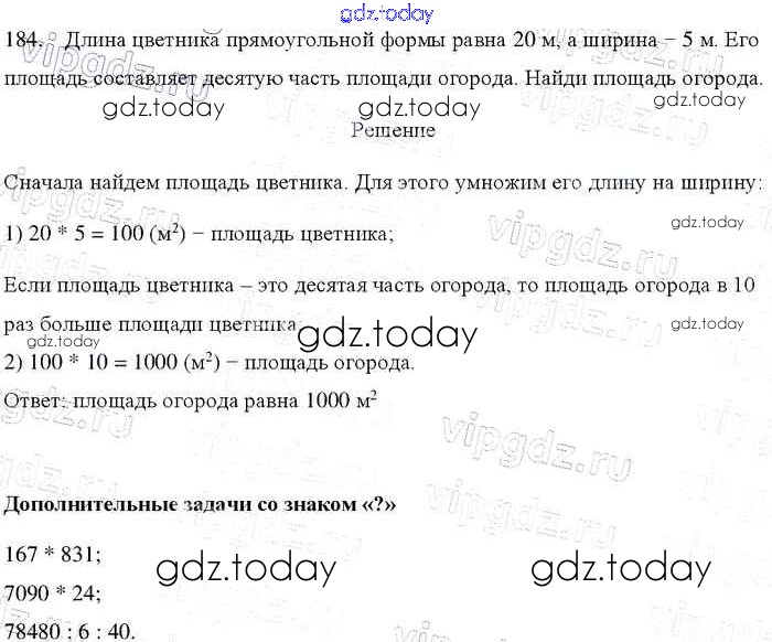 На страницах сайта gdz.today вы найдете учебный и вспомогательный материал, направленный на улучшения знаний школьной программы. ГДЗ - онлайн мир знаний Упражнения Решение к части 2 184 Учебнику по Математике для 4 класса Моро, Бантова Просвещение Школа России 2015