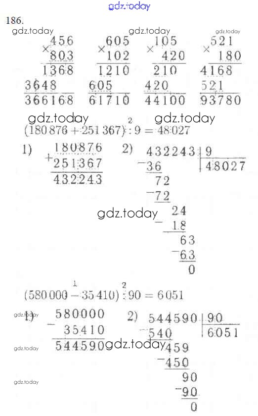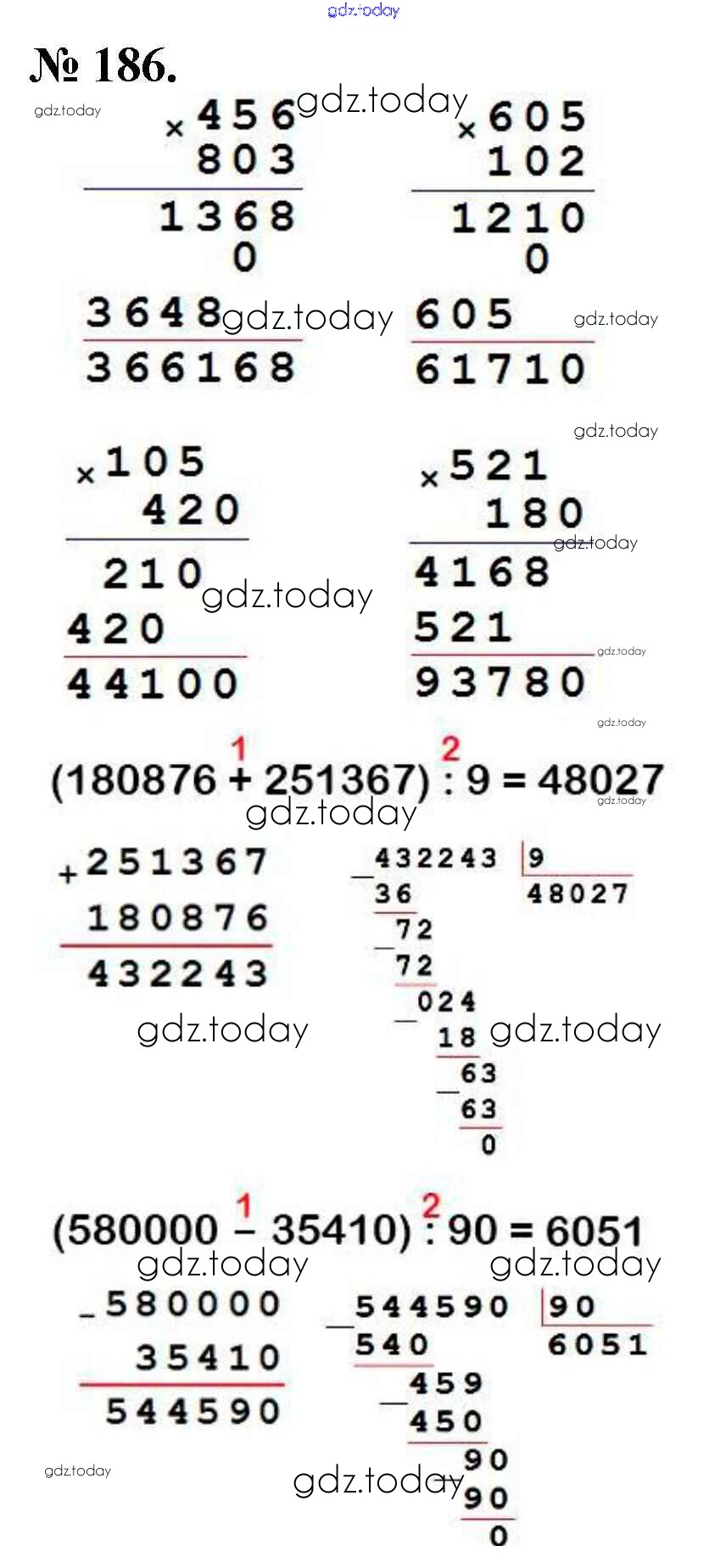 На страницах сайта gdz.today вы найдете учебный и вспомогательный материал, направленный на улучшения знаний школьной программы. ГДЗ - онлайн мир знаний Упражнения Решение к части 2 186 Учебнику по Математике для 4 класса Моро, Бантова Просвещение Школа России 2015