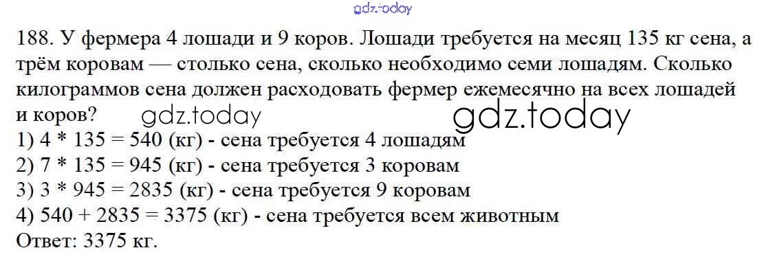 На страницах сайта gdz.today вы найдете учебный и вспомогательный материал, направленный на улучшения знаний школьной программы. ГДЗ - онлайн мир знаний Упражнения Решение к части 2 188 Учебнику по Математике для 4 класса Моро, Бантова Просвещение Школа России 2015