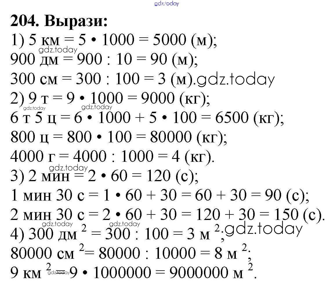 Ответы к Упражнения Решение к части 2 204 Учебнику по Математике для 4 класса Моро, Бантова Просвещение Школа России 2015