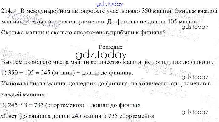 На страницах сайта gdz.today вы найдете учебный и вспомогательный материал, направленный на улучшения знаний школьной программы. ГДЗ - онлайн мир знаний Упражнения Решение к части 2 214 Учебнику по Математике для 4 класса Моро, Бантова Просвещение Школа России 2015