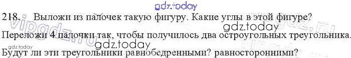 На страницах сайта gdz.today вы найдете учебный и вспомогательный материал, направленный на улучшения знаний школьной программы. ГДЗ - онлайн мир знаний Упражнения Решение к части 2 218 Учебнику по Математике для 4 класса Моро, Бантова Просвещение Школа России 2015