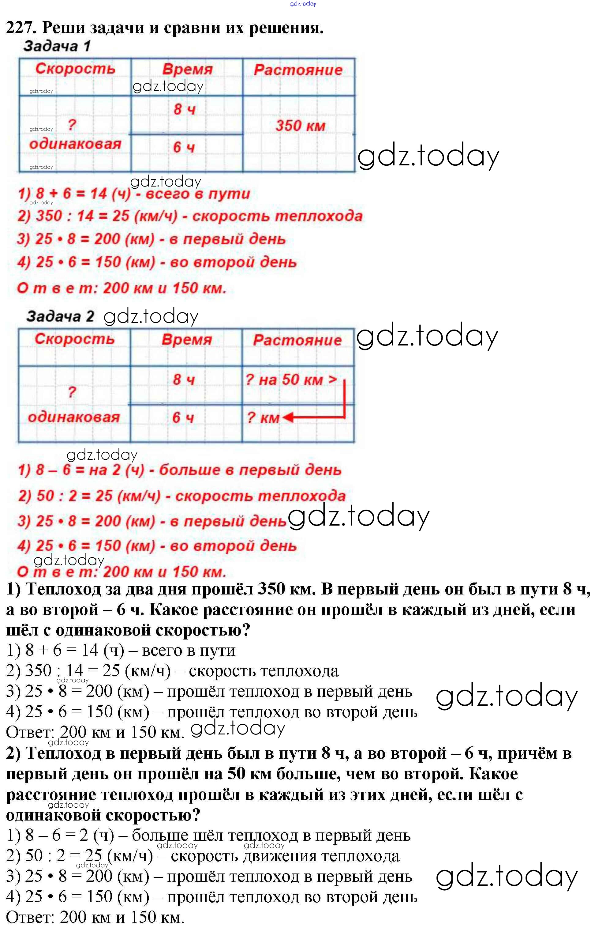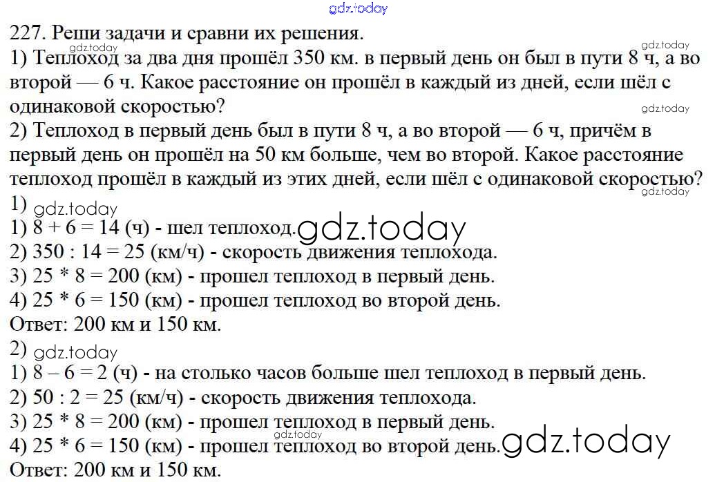 Ответы к Упражнения Решение к части 2 227 Учебнику по Математике для 4 класса Моро, Бантова Просвещение Школа России 2015