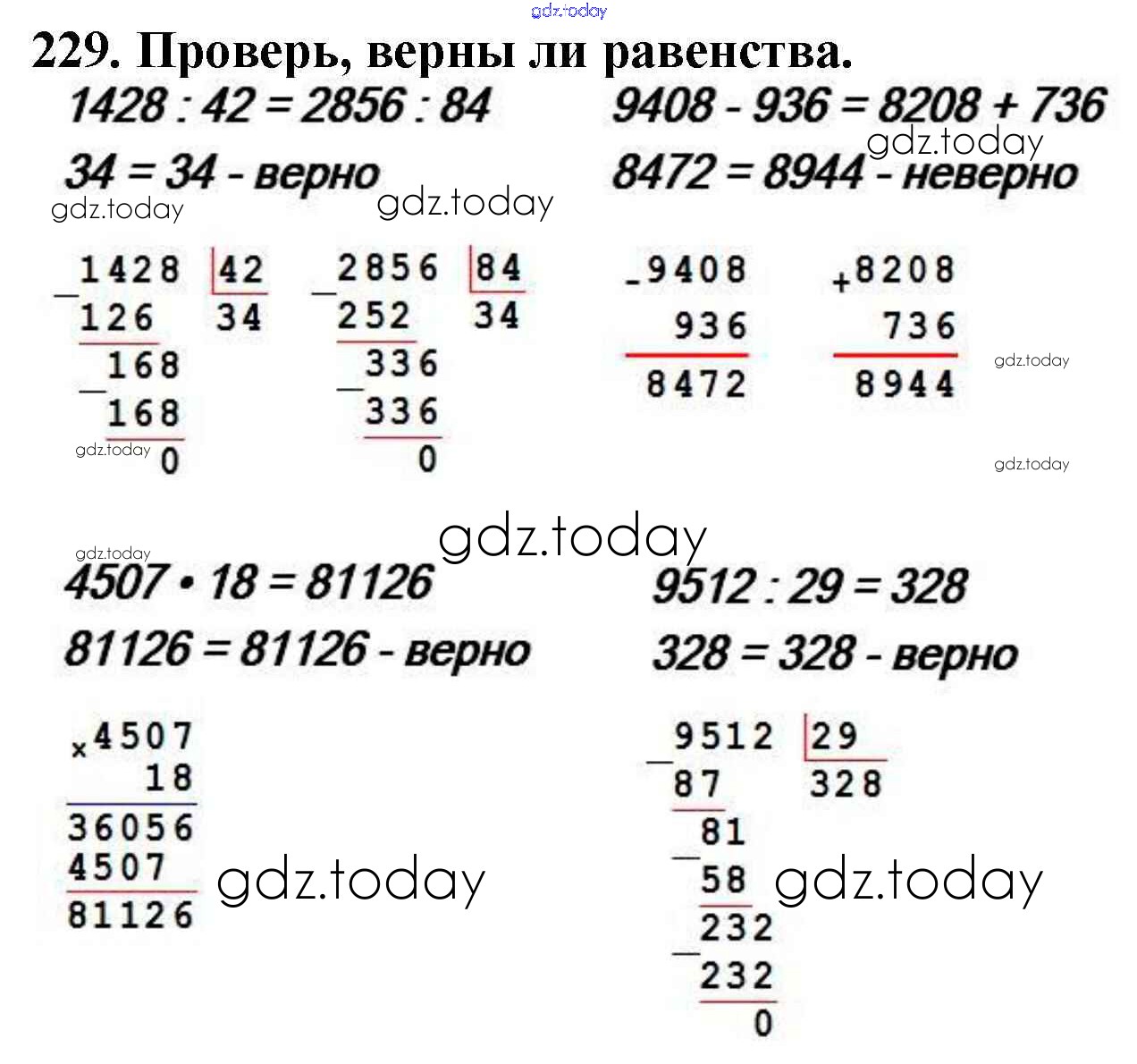 Ответы к Упражнения Решение к части 2 229 Учебнику по Математике для 4 класса Моро, Бантова Просвещение Школа России 2015