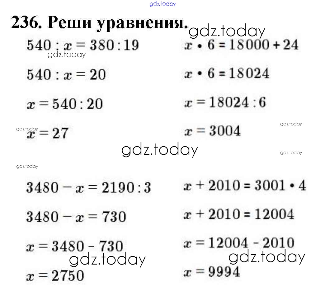 На страницах сайта gdz.today вы найдете учебный и вспомогательный материал, направленный на улучшения знаний школьной программы. ГДЗ - онлайн мир знаний Упражнения Решение к части 2 236 Учебнику по Математике для 4 класса Моро, Бантова Просвещение Школа России 2015