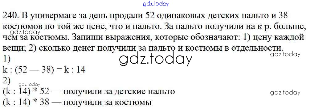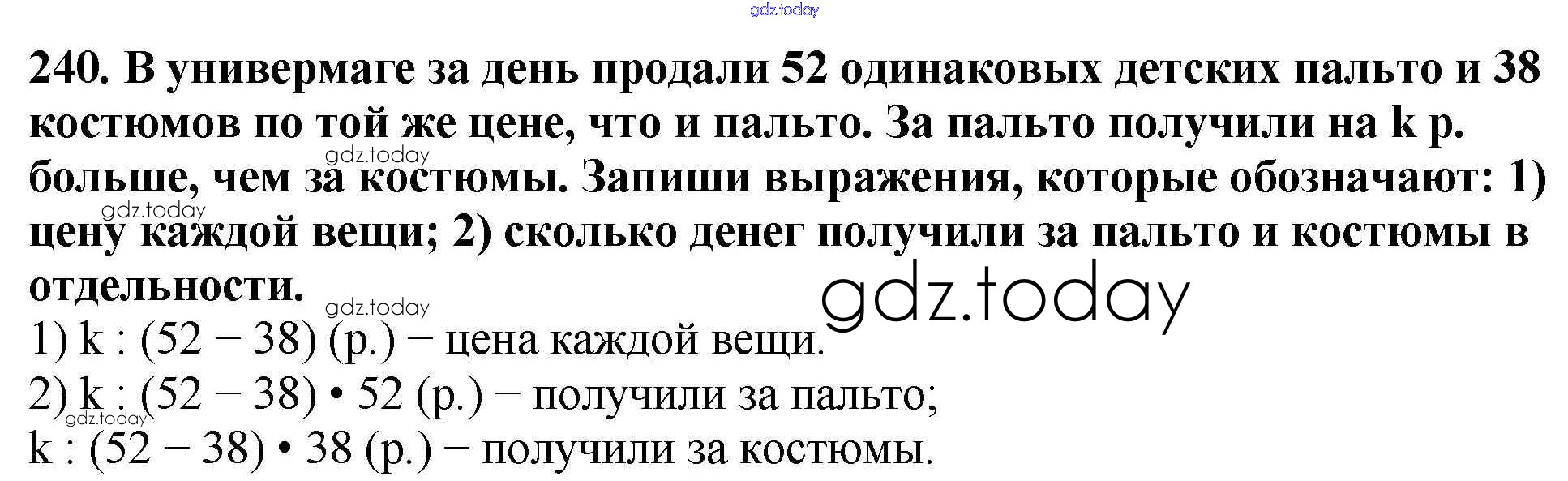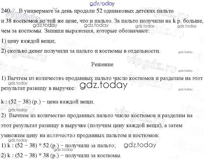 Ответы к Упражнения Решение к части 2 240 Учебнику по Математике для 4 класса Моро, Бантова Просвещение Школа России 2015