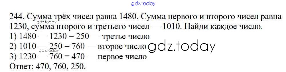 Ответы к Упражнения Решение к части 2 244 Учебнику по Математике для 4 класса Моро, Бантова Просвещение Школа России 2015