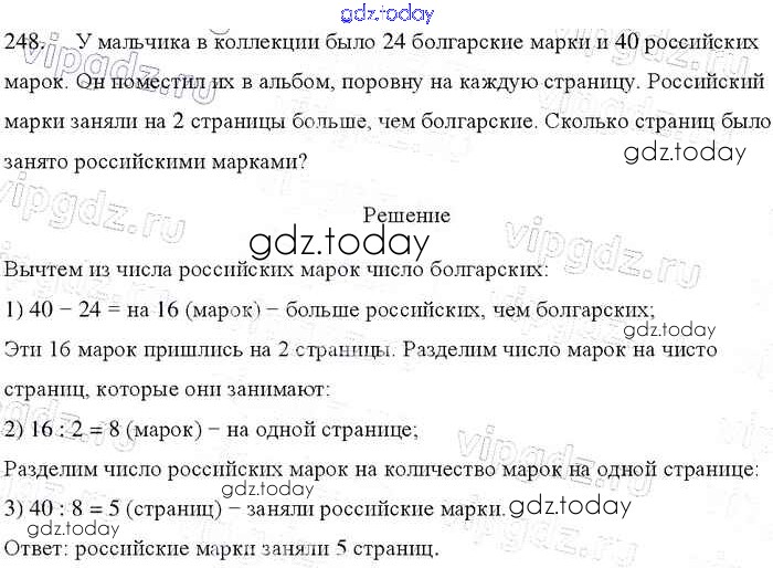 На страницах сайта gdz.today вы найдете учебный и вспомогательный материал, направленный на улучшения знаний школьной программы. ГДЗ - онлайн мир знаний Упражнения Решение к части 2 248 Учебнику по Математике для 4 класса Моро, Бантова Просвещение Школа России 2015