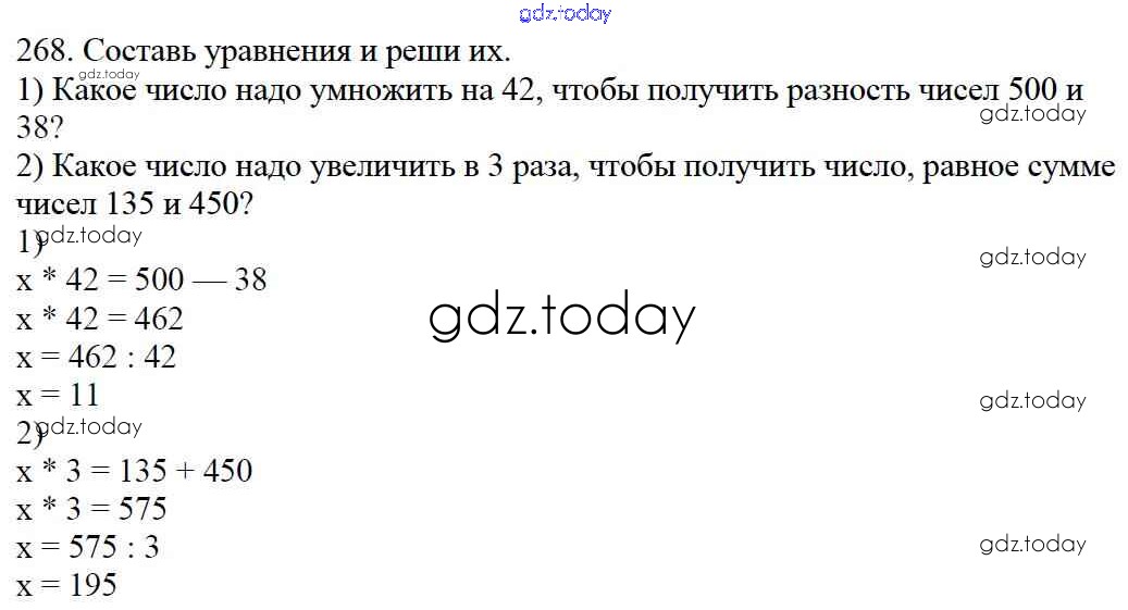 На страницах сайта gdz.today вы найдете учебный и вспомогательный материал, направленный на улучшения знаний школьной программы. ГДЗ - онлайн мир знаний Упражнения Решение к части 2 268 Учебнику по Математике для 4 класса Моро, Бантова Просвещение Школа России 2015
