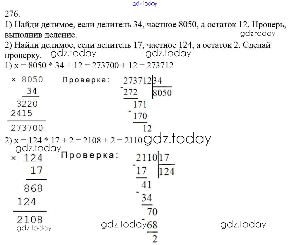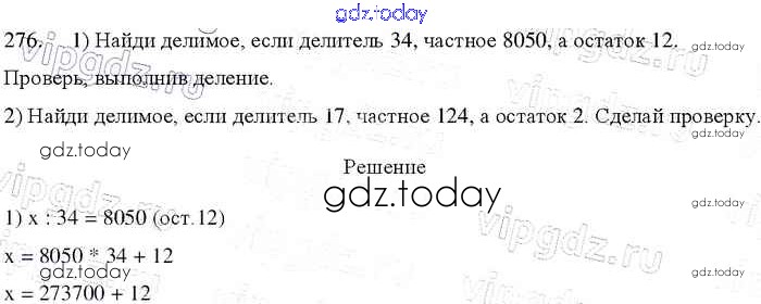 На страницах сайта gdz.today вы найдете учебный и вспомогательный материал, направленный на улучшения знаний школьной программы. ГДЗ - онлайн мир знаний Упражнения Решение к части 2 276 Учебнику по Математике для 4 класса Моро, Бантова Просвещение Школа России 2015