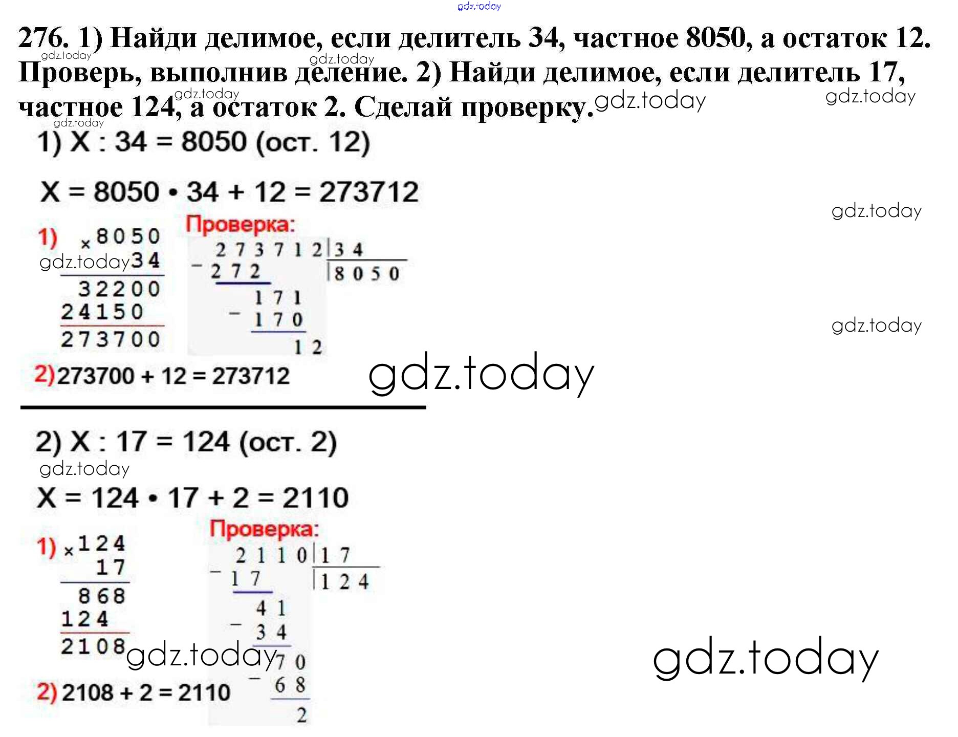 Ответы к Упражнения Решение к части 2 276 Учебнику по Математике для 4 класса Моро, Бантова Просвещение Школа России 2015