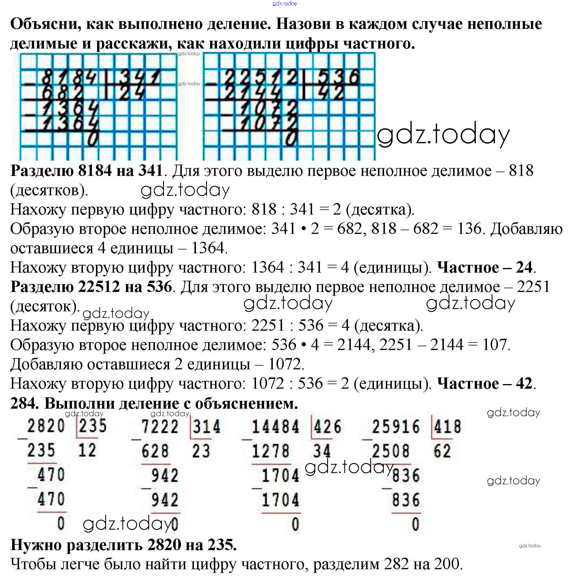 Ответы к Упражнения Решение к части 2 284 Учебнику по Математике для 4 класса Моро, Бантова Просвещение Школа России 2015