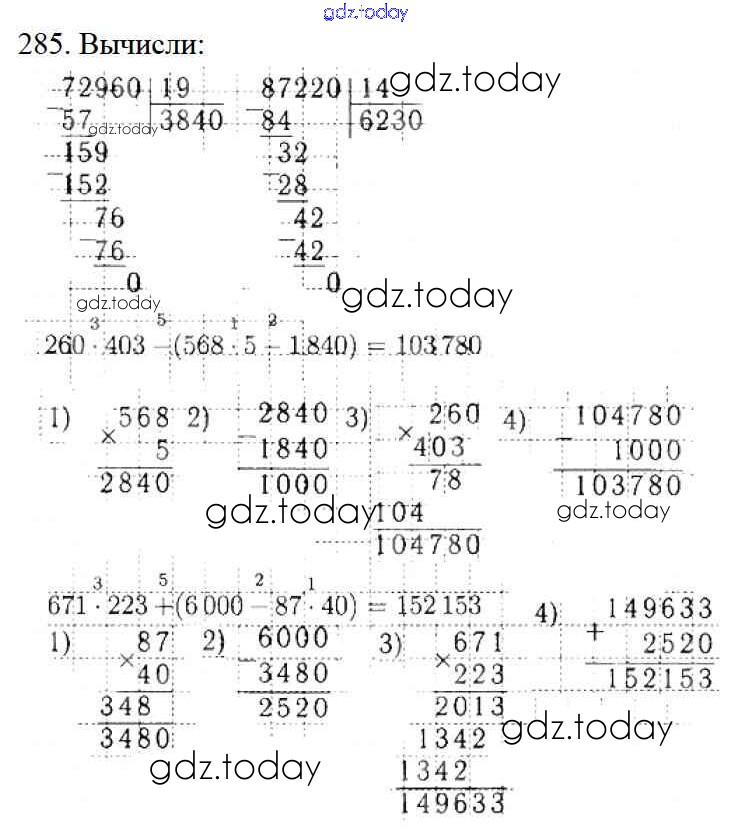 На страницах сайта gdz.today вы найдете учебный и вспомогательный материал, направленный на улучшения знаний школьной программы. ГДЗ - онлайн мир знаний Упражнения Решение к части 2 285 Учебнику по Математике для 4 класса Моро, Бантова Просвещение Школа России 2015