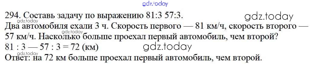 Ответы к Упражнения Решение к части 2 294 Учебнику по Математике для 4 класса Моро, Бантова Просвещение Школа России 2015