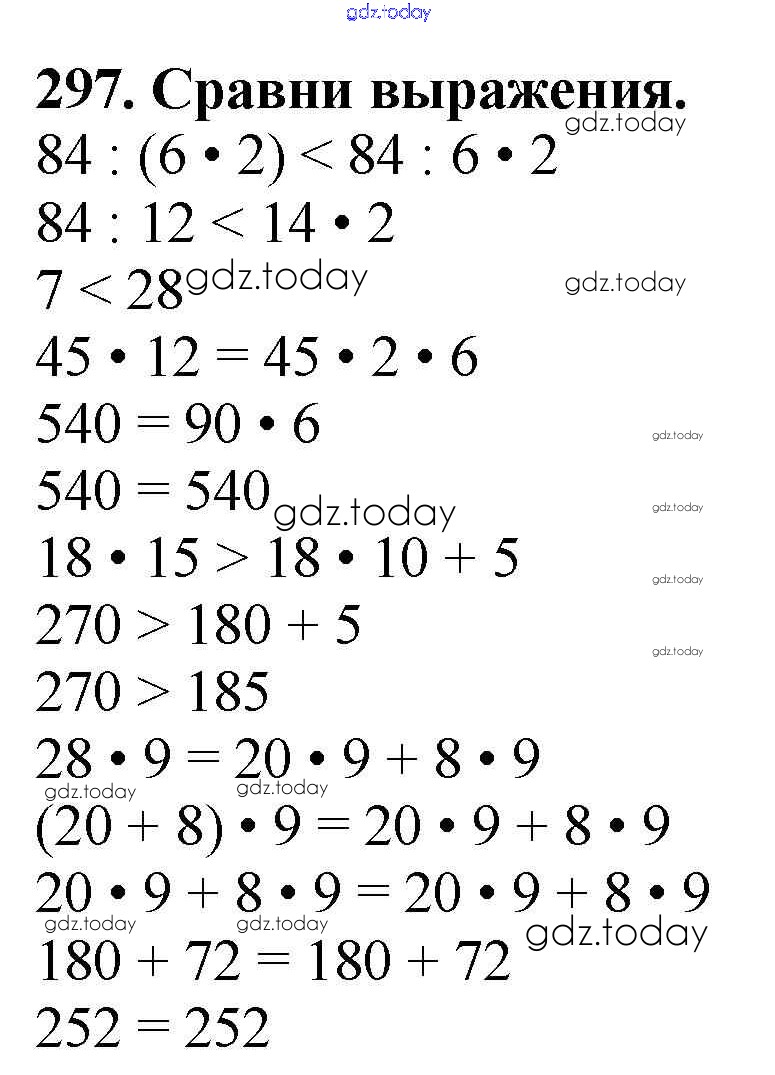 На страницах сайта gdz.today вы найдете учебный и вспомогательный материал, направленный на улучшения знаний школьной программы. ГДЗ - онлайн мир знаний Упражнения Решение к части 2 297 Учебнику по Математике для 4 класса Моро, Бантова Просвещение Школа России 2015