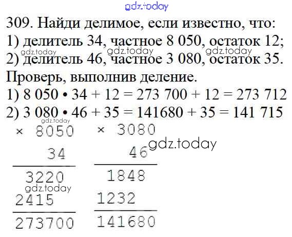 Ответы к Упражнения Решение к части 2 309 Учебнику по Математике для 4 класса Моро, Бантова Просвещение Школа России 2015