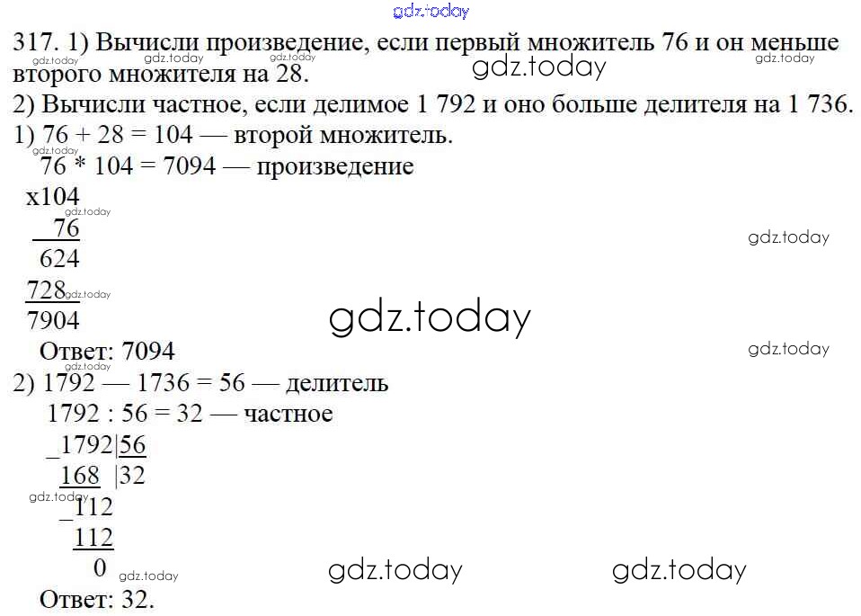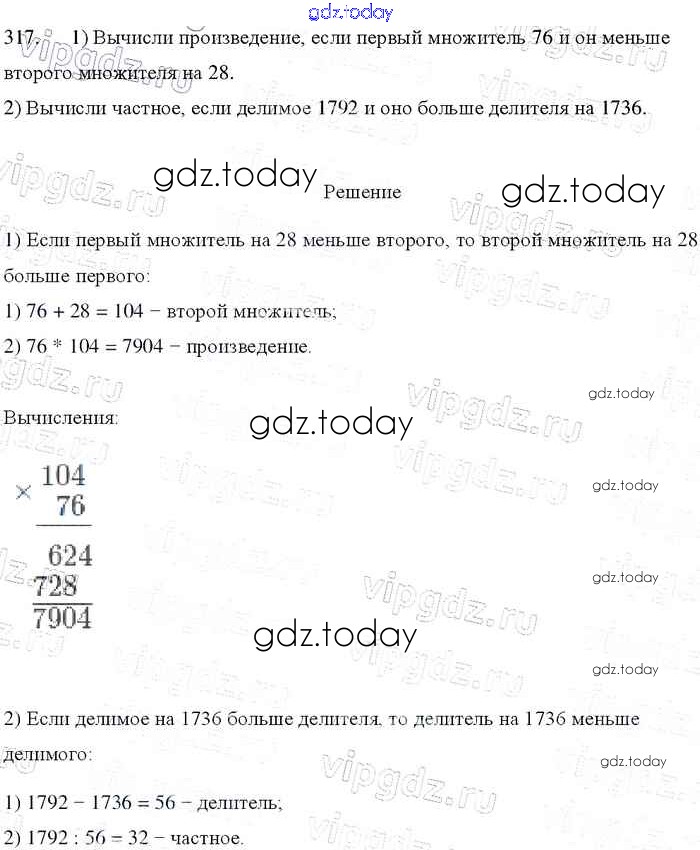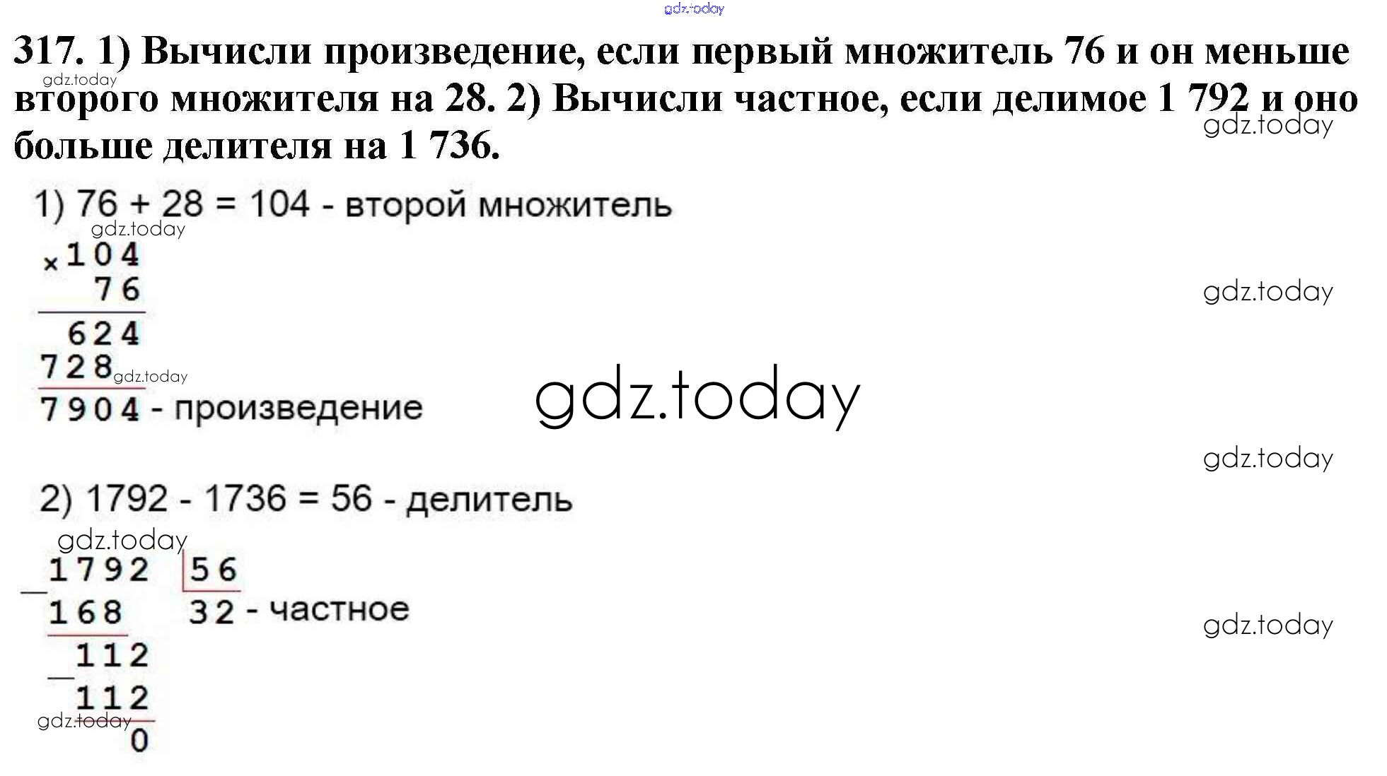 Ответы к Упражнения Решение к части 2 317 Учебнику по Математике для 4 класса Моро, Бантова Просвещение Школа России 2015