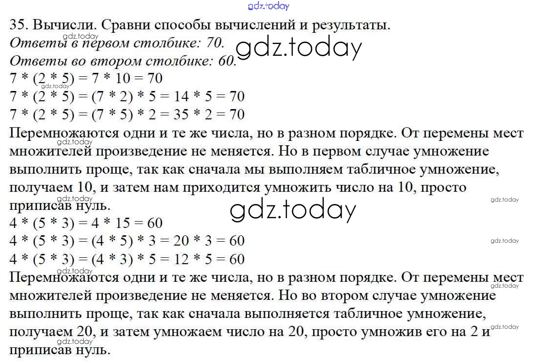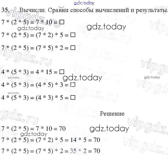 На страницах сайта gdz.today вы найдете учебный и вспомогательный материал, направленный на улучшения знаний школьной программы. ГДЗ - онлайн мир знаний Упражнения Решение к части 2 35 Учебнику по Математике для 4 класса Моро, Бантова Просвещение Школа России 2015