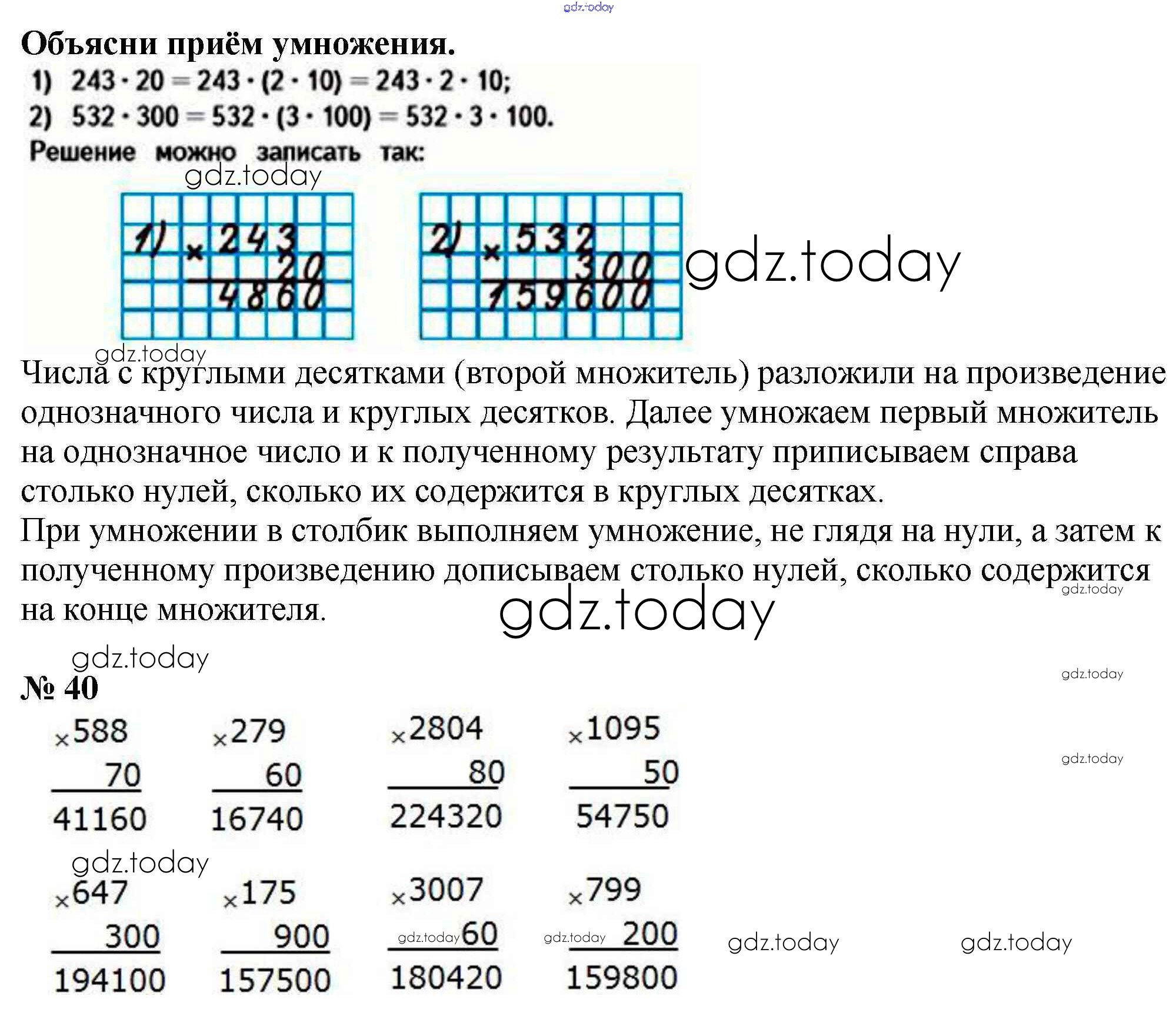 Ответы к Упражнения Решение к части 2 40 Учебнику по Математике для 4 класса Моро, Бантова Просвещение Школа России 2015