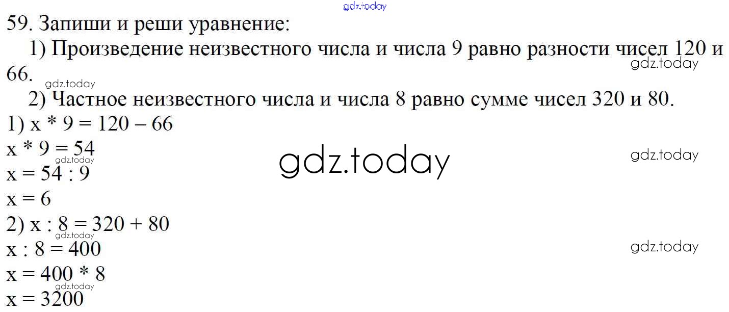 Ответы к Упражнения Решение к части 2 59 Учебнику по Математике для 4 класса Моро, Бантова Просвещение Школа России 2015