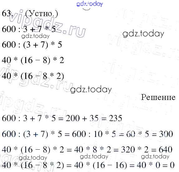 Ответы к Упражнения Решение к части 2 63 Учебнику по Математике для 4 класса Моро, Бантова Просвещение Школа России 2015