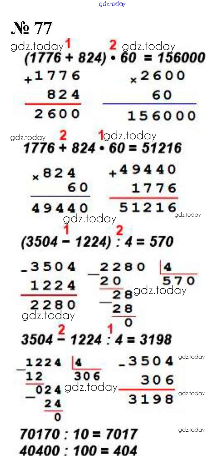 На страницах сайта gdz.today вы найдете учебный и вспомогательный материал, направленный на улучшения знаний школьной программы. ГДЗ - онлайн мир знаний Упражнения Решение к части 2 77 Учебнику по Математике для 4 класса Моро, Бантова Просвещение Школа России 2015